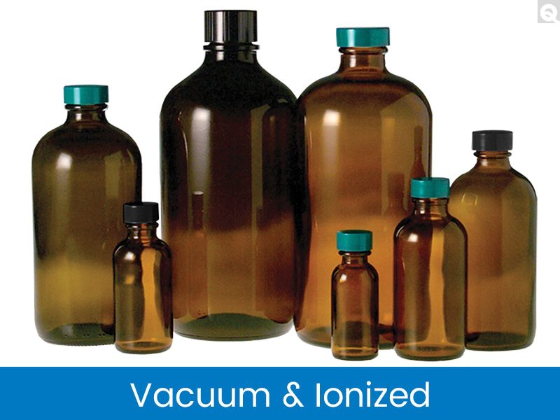 120cc Amber Wide Mouth Packer with attached 38-400 Green Thermoset F217 PTFE Lined Cap, Vacuum & Ionized