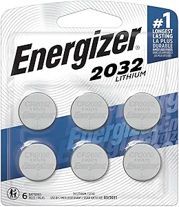 Energizer CR2032 Batteries, 3V Lithium Coin Cell 2032 Watch Battery,White (6 Count)