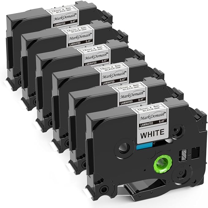 MarkDomain P Touch Label Tape, 12mm 0.47 Inch Laminated White Tape Replacement for Brother Label Maker Tape TZe-231 TZe231 TZe TZ Tape, Work with PTH-110 D220 D210 D600, Black on White, 6-Pack