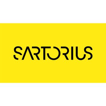 Logo of Sartorius on a bright yellow background.