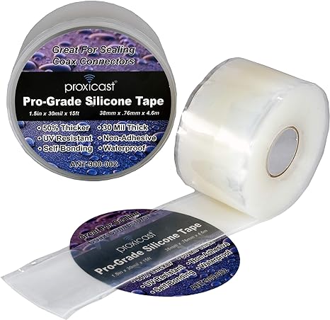 Proxicast Pro-Grade Extra Strong 30mil Weatherproof Self-Fusing Silicone Rubber Sealing Tape For Outdoor Antenna Coax & Electrical Cables, Hose/Pipe Leaks & Emergency Repairs (1.5″ x 15′ roll) – Clear